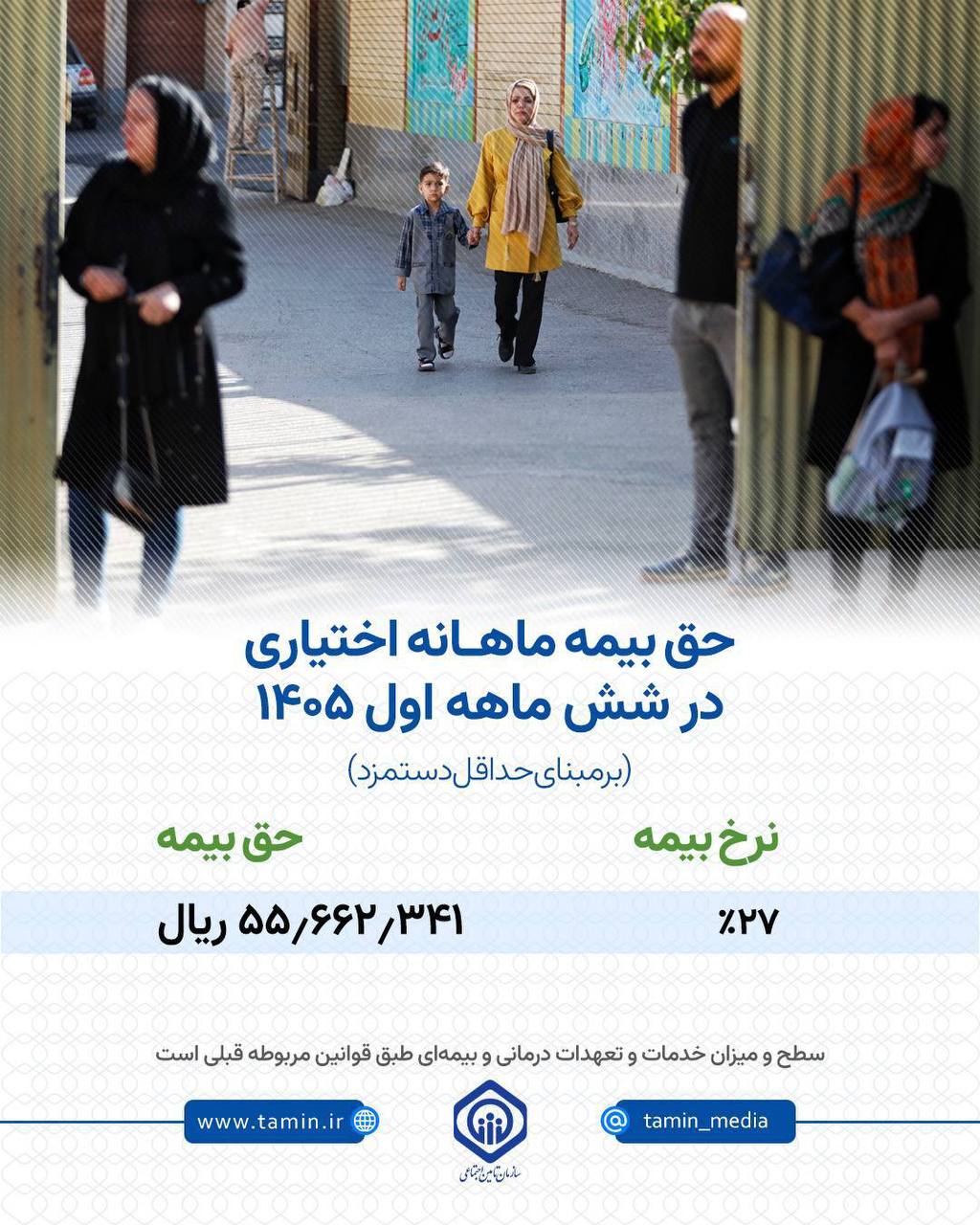 سازمان تأمین اجتماعی به صورت رسمی مبلغ حق بیمه اختیاری را برای نیمه نخست سال 1405 مشخص نمود. طبق اعلام این سازمان، متقاضیان این نوع بیمه موظف به پرداخت ماهانه 55,662,341 ریال هستند. این مبلغ با توجه به تعیین حداقل دستمزد سال جاری توسط شورای عالی کار و اعمال نرخ مصوب برای بیمههای اختیاری محاسبه و نهایی شده است. سطح و میزان خدمات درمانی و تعهدات بیمهای نیز مطابق با قوانین قبلی به بیمهشدگان ارائه خواهد شد.