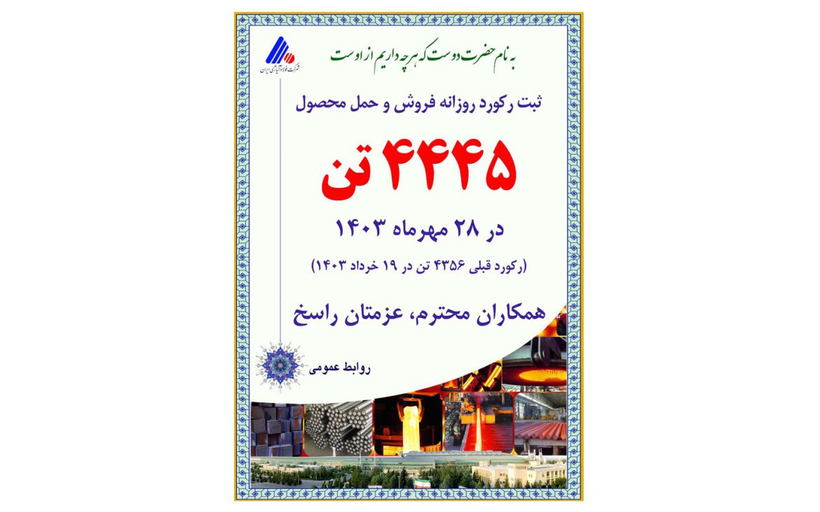 این شرکت توانست در ۲۸ مهرماه ۱۴۰۳ با ثبت ۴ هزار و ۴۴۵ تن فروش و حمل محصول از رکورد پیشین خود عبور کند.