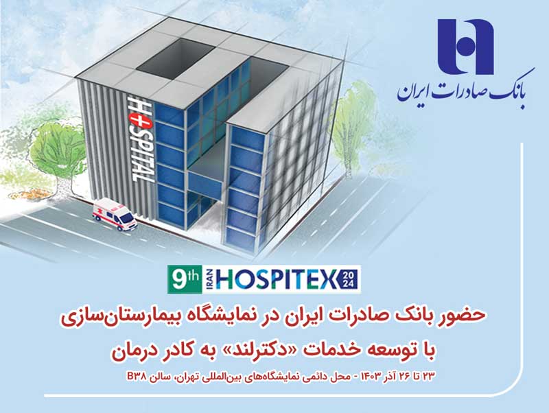 به گزارش روابط‌عمومی بانک صادرات ایران، نهمین نمایشگاه بین‌المللی بیمارستان‌سازی، تجهیزات و تأسیسات بیمارستانی (Hospitex 2024) با حضور بانک صادرات ایران و ارائه خدمات نوین مالی و بانکی مرتبط با بخش درمان به ویژه نرم‌افزار «دکترلند» در قالب پلتفرم بانکداری دیجیتال «سپینو» و همچنین حضور مدیران ارشد بانک برای پاسخگویی به نیاز تأمین مالی فعالان صنعت بیمارستان‌سازی و تجهیزات وابسته، از جمعه 23 آذرماه آغاز به کار خواهد کرد. غرفه بانک صادرات ایران در سالن B38 این نمایشگاه که تا 26 آذر ادامه خواهد یافت، پذیرای فعالان بخش درمان کشور خواهد بود.