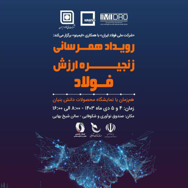 رویداد همرسانی زنجیره ارزش فولاد؛ چهارم و پنجم دیماه (سه شنبه و چهارشنبه) از ساعت ۸ صبح تا ۱۶ همزمان با نمایشگاه محصولات دانشبنیان در سالن همایش صندوق نوآوری و شکوفایی ریاست جمهوری برپا است.