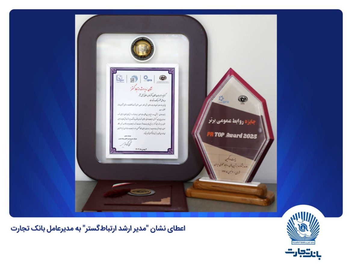 به گزارش مدیریت روابطعمومی و ارتقاء سرمایه اجتماعی بانک تجارت، این نشان بواسطه انجام خدمات موثر، مساعدت در توسعه ارتباطات با جامعه مخاطب، توجه به افکار عمومی، ارتباط موثر با رسانهها، حمایت از برنامههای ارتباطی و نگاه تخصصی به حوزه ارتباطات و روابطعمومی به مدیرعامل این بانک اعطا شده است.