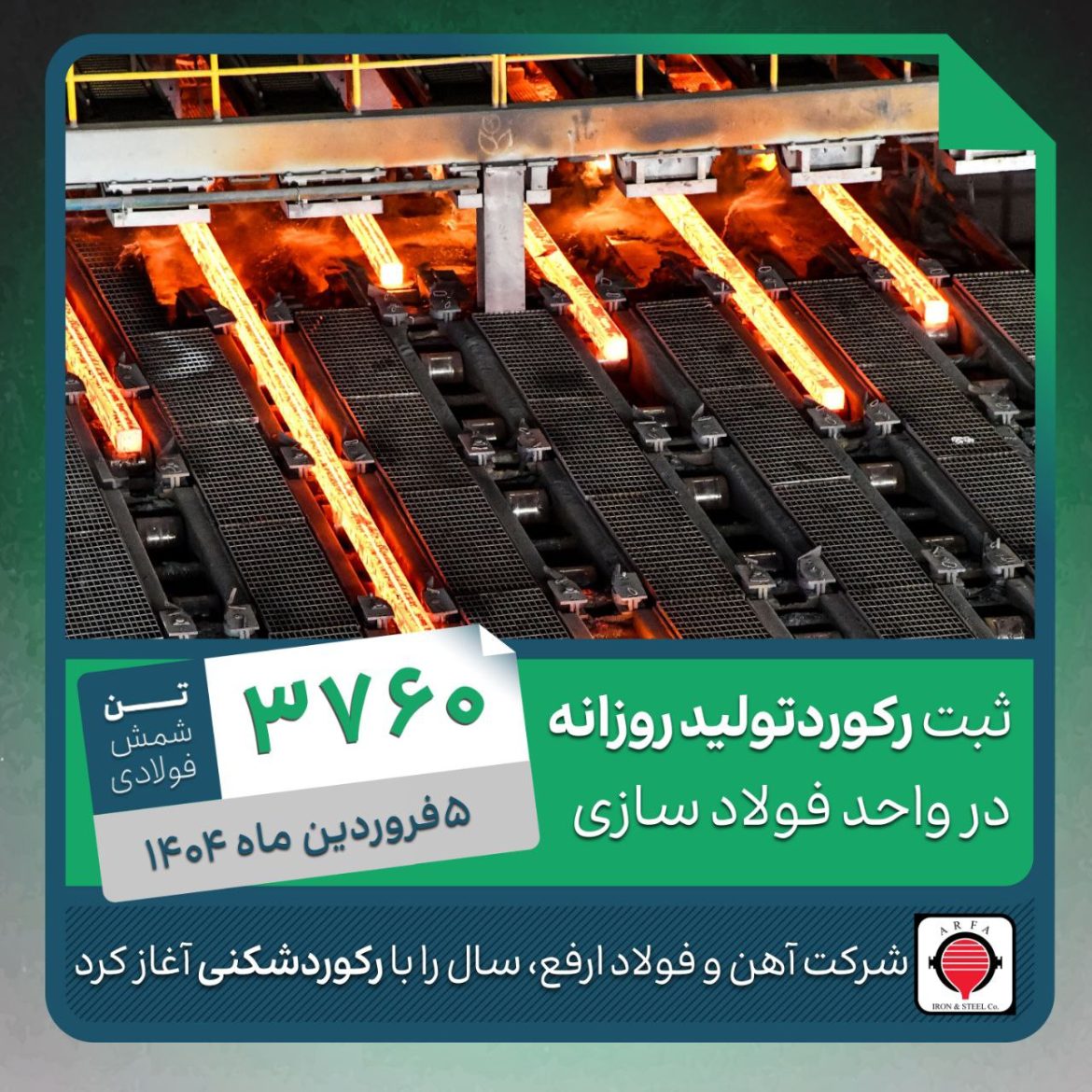 این موفقیت ارزشمند، نشان از برنامهریزی دقیق، تلاش مستمر کارکنان و بهینهسازی فرآیندهای تولید دارد و نویدبخش سالی پربار برای شرکت آهن و فولاد ارفع است.