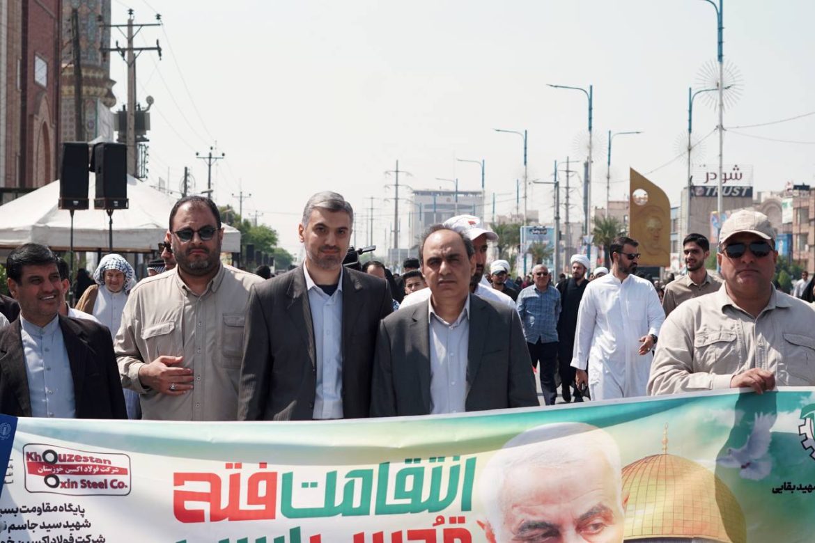 به گزارش روابط عمومی شرکت فولاد اکسین خوزستان؛ پیش از ظهر امروز جمعه ۸ فروردینماه، همزمان با سراسر شهرهای ایران و بسیاری از نقاط جهان، راهپیمایی پرشور روز قدس در اهواز نیز برگزار شد.