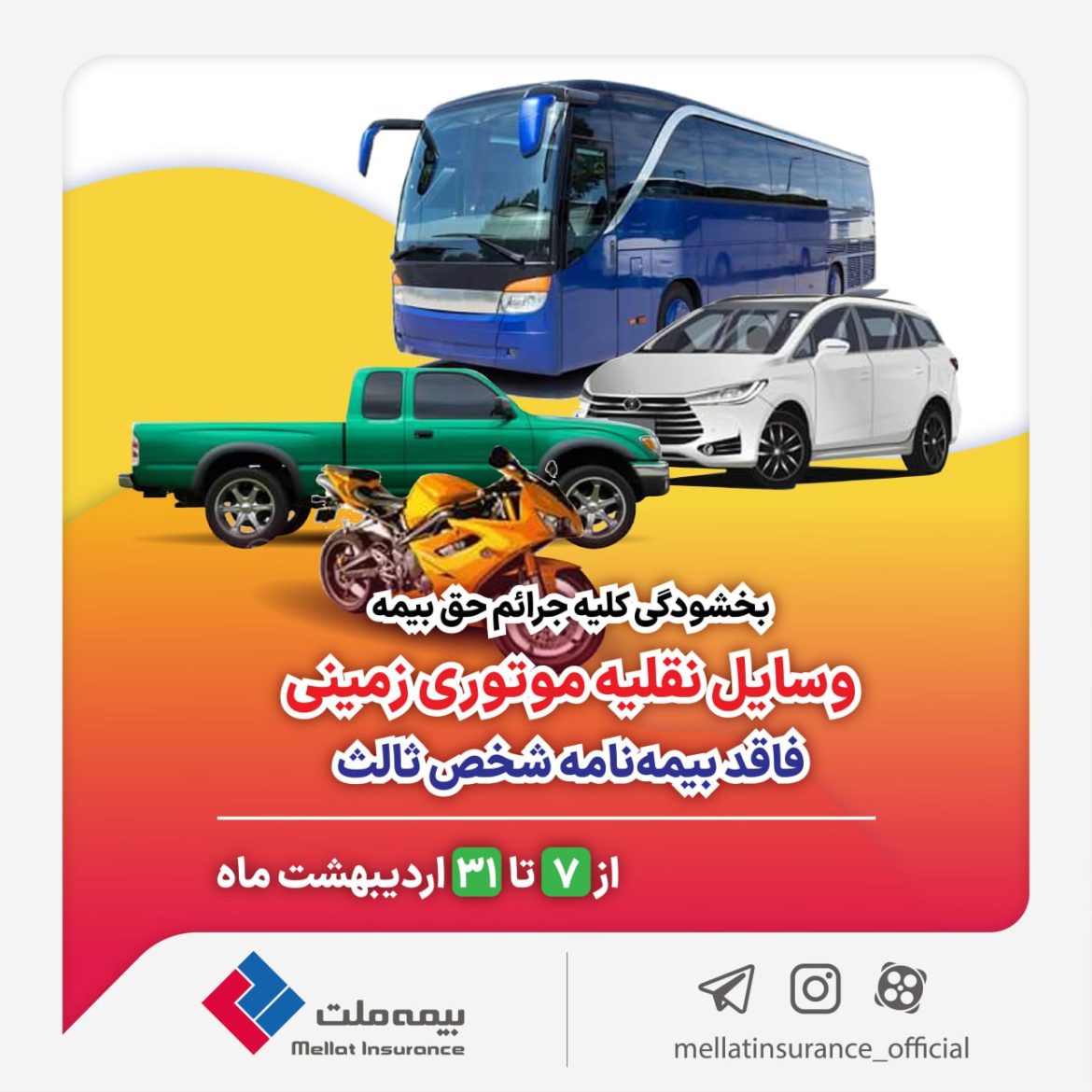 طبق اعلام بیمه مرکزی، مالکان وسایل نقلیه موتوری زمینی از تاریخ ۷ اردیبهشت تا پایان روز ۳۱ اردیبهشت ۱۴۰۴ میتوانند بدون پرداخت جریمه دیرکرد، برای خرید بیمهنامه شخص ثالث اقدام کنند. این فرصت ۲۵ روزه فرصتی کمنظیر برای وسایل نقلیه فاقد بیمه است تا تبعات قانونی و پیامدهای اجتماعی را به حداقل برسانند.