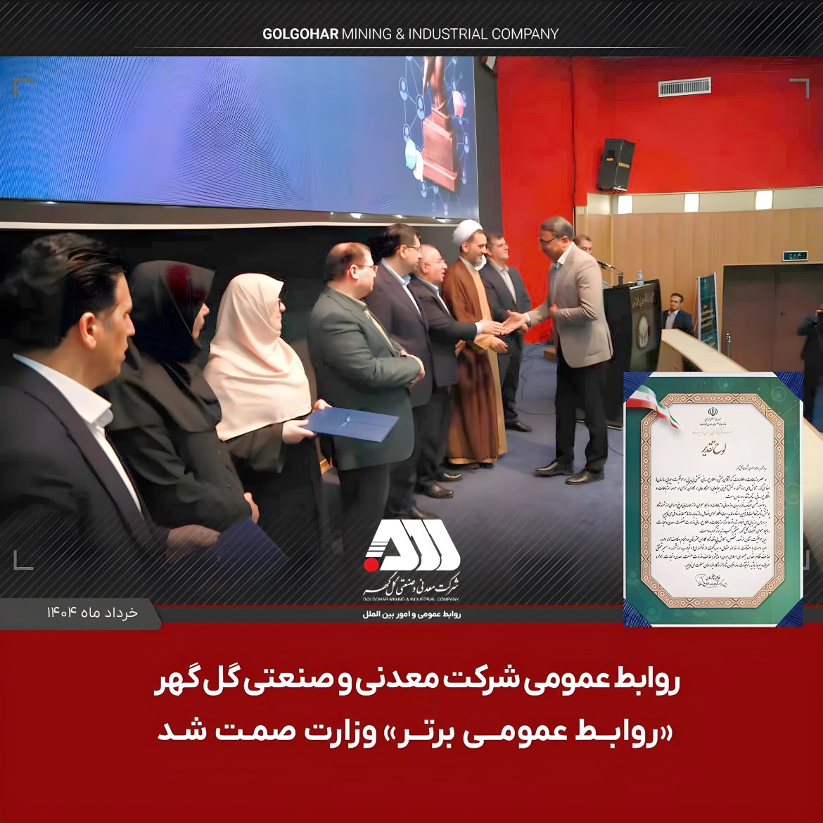 روابط عمومی شرکت گلگهر در میان همه روابط عمومیهای شرکتهای معدنی، صنعتی و تابعه وزارت صمت، موفق شد عنوان “روابط عمومی برتر” را از مرکز ارتباطات این وزارتخانه به دست آورد. این ارزیابی تخصصی، جایگاه گلگهر را به عنوان الگوی تعامل رسانهای و اطلاعرسانی حرفهای در سطح ملی تثبیت کرد.