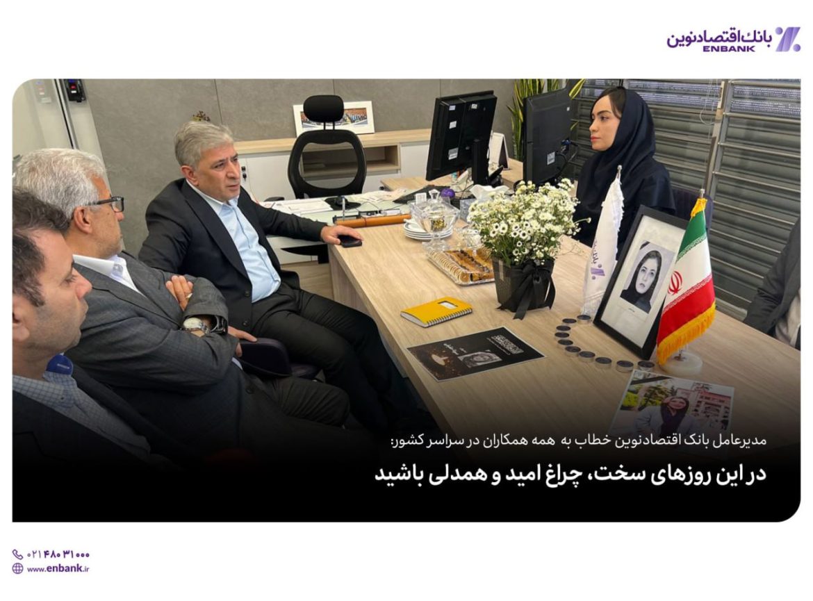 حسینزاده وفاداری و همدلی کارکنان را نقطه اتکای بانک اقتصادنوین و مایه افتخار سازمان دانست. او مهمترین رسالت همگان در این روزها را فراتر از خدمات مالی، زنده نگه داشتن امید، همدلی و انسانیت عنوان کرد. وی در پایان از همه خواست: “چراغی باشیم برای هم، تا این شب، آسانتر سپری شود.”