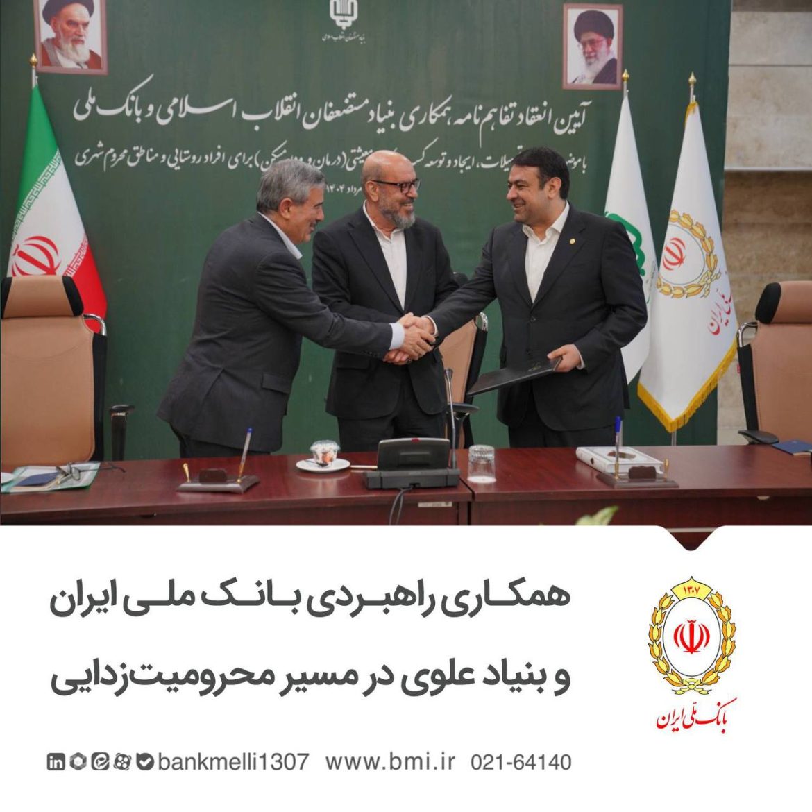 بانک ملی ایران و بنیاد علوی با هدف توانمندسازی اقشار آسیبپذیر، تفاهمنامه همکاری مشترکی امضا کردند. این مراسم با حضور حسین دهقان، رئیس بنیاد مستضعفان انقلاب اسلامی، و ابوالفضل نجارزاده، مدیرعامل بانک ملی ایران برگزار شد. هدف اصلی این همکاری، توسعه کسبوکارهای خرد در مناطق روستایی و شهری است. همچنین، محمود عسگری آزاد، مدیرعامل بنیاد علوی، در این مراسم حضور داشت.