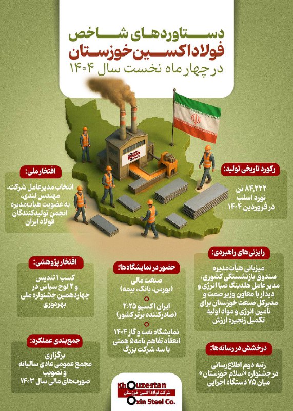 عملکرد فولاد اکسین خوزستان در چهار ماه نخست سال 1404، تصویری از یک مجموعه پویا و هدفمند را به نمایش میگذارد. ثبت رکورد تولید 84,222 تنی در کنار دستاوردهای ملی مانند کسب جایزه بهرهوری و عضویت مدیرعامل در هیئت مدیره انجمن فولاد، نشاندهنده یکپارچگی استراتژیک در حوزههای تولیدی و مدیریتی است. این موفقیتها، همراه با تایید عملکرد مالی در مجمع و رایزنیهای موفق برای تامین پایدار مواد اولیه، موقعیت شرکت را در صنعت فولاد کشور تقویت کرده است. حضور موثر در نمایشگاههای کلیدی و انعقاد تفاهمنامههای جدید نیز چشمانداز مثبتی برای رشد و توسعه پایدار این واحد صنعتی ترسیم میکند.