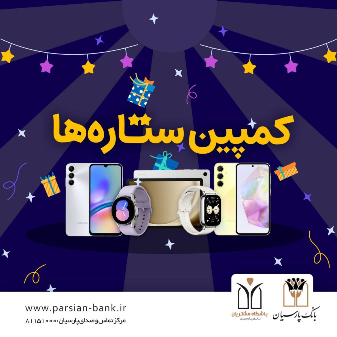 باشگاه مشتریان بانک پارسیان، طرح تشویقی جدیدی را با عنوان «کمپین ستارهها» برای مشتریان خود تدارک دیده است. مشتریان گرامی تا پایان شهریور ماه فرصت دارند با مشارکت در این کمپین، شانس خود را برای برنده شدن جوایز ارزنده امتحان کنند. این اقدام در راستای قدردانی از همراهی مشتریان و ترویج استفاده از خدمات بانکداری الکترونیک صورت میگیرد.
