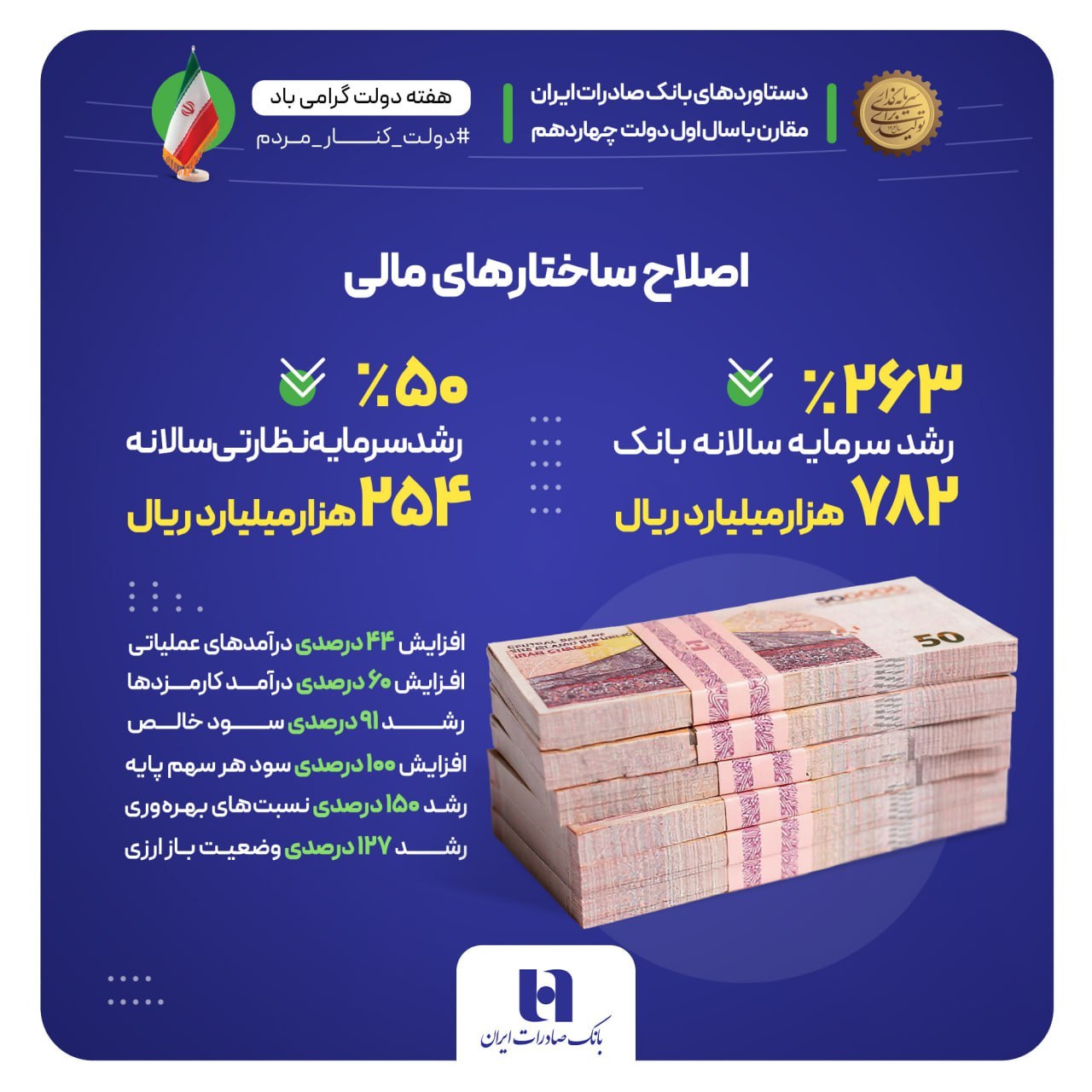 اصلاحات ساختاری در بانک صادرات ایران تأثیر مستقیمی بر درآمدهای این بانک داشته است. درآمدهای عملیاتی با افزایش 44 درصدی روبرو شده که نشاندهنده بهبود کارایی در فعالیتهای اصلی بانک است. علاوه بر این، درآمد حاصل از کارمزدها نیز 60 درصد رشد داشته است. این رشد بیانگر توسعه خدمات غیرمشاع و متنوعسازی سبد درآمدی بانک صادرات است که ریسکهای اعتباری را کاهش میدهد.