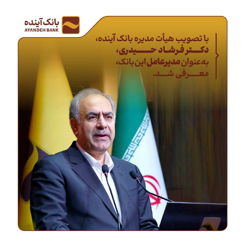 هیأت مدیره بانک آینده با برگزاری جلسهای در روز شنبه، 29 شهریور 1404، دکتر فرشاد حیدری را به عنوان مدیرعامل جدید این بانک معرفی و منصوب کرد. دکتر حیدری یکی از چهرههای شناختهشده و دارای سوابق مدیریتی قابل توجه در نظام بانکی کشور محسوب میشود. این انتصاب در راستای تعیین ترکیب جدید مدیریتی و راهبری بانک صورت گرفته است.