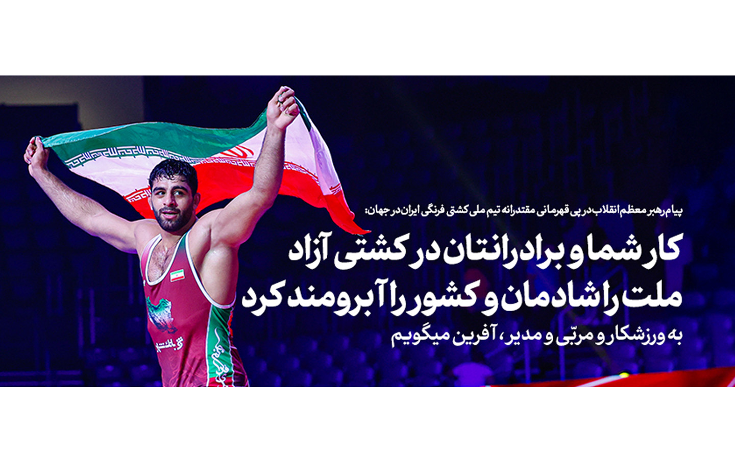 حضرت آیتالله خامنهای در پیامی با تبریک قهرمانی تیم ملّی کشتی فرنگی در جهان، از «ورزشکار، مربّی و مدیر» برای شادمان کردن ملّت و آبرومند کردن کشور تشکّر کردند.