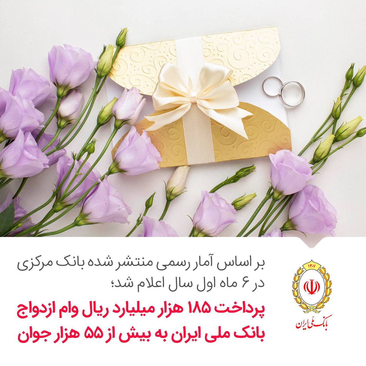 بر اساس آمار رسمی بانک مرکزی، بانک ملی ایران در 6 ماه اول سال با پرداخت 185 هزار میلیارد ریال تسهیلات ازدواج به 55,140 جوان، پیشتاز نظام بانکی کشور شد. این بانک به تنهایی 19 درصد از کل تعداد وامهای ازدواج پرداختی توسط سیستم بانکی را به خود اختصاص داده است. این عملکرد نشاندهنده سهم قابل توجه بانک ملی در حمایت از تشکیل خانواده است. به طور متوسط، شعب این بانک روزانه به 1,028 متقاضی وام ازدواج پرداخت کردهاند.