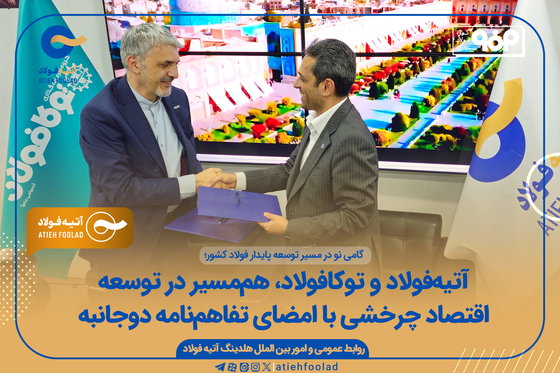 بر اساس گزارش روابطعمومی و امور بینالملل هلدینگ آتیهفولاد، یک تفاهمنامه همکاری مشترک و استراتژیک میان این هلدینگ و گروه سرمایهگذاری توکافولاد به امضا رسید. این همکاری با هدف اصلی توسعه پروژههای کلیدی اقتصاد چرخشی، بازیافت هدفمند پسماندهای صنعتی، بهینهسازی مصرف منابع حیاتی و ارتقای کلی بهرهوری در زنجیره فولاد کشور تعریف شده است. این اقدام گامی نو و موثر در مسیر توسعه پایدار صنعت فولاد ایران به شمار میرود.