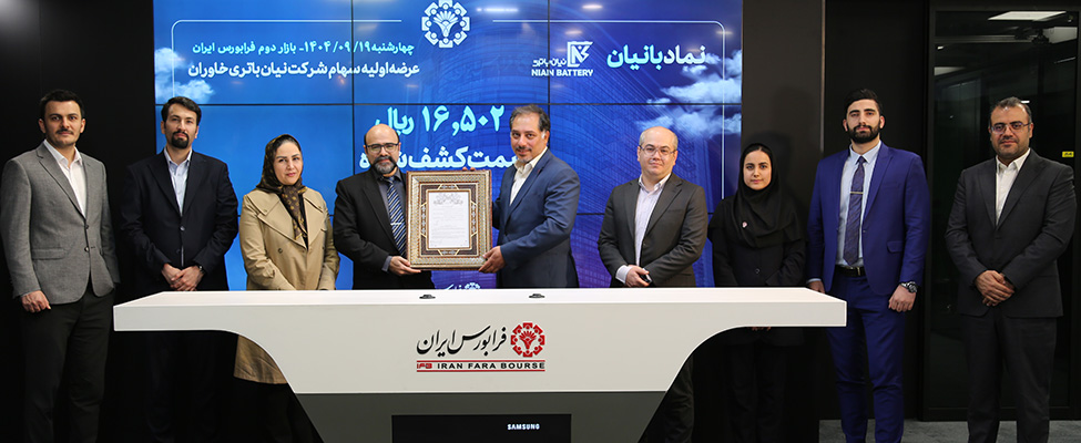 سهام شرکت نیان باتری خاوران با نماد معاملاتی «بانیان» به عنوان نماینده جدید گروه ماشینآلات و دستگاههای برقی، طی فرآیندی شفاف در نوزدهمین روز آذرماه ۱۴۰۴ عرضه شد. این عرضه اولیه به روش ترکیبی و در دو مرحله مجزا صورت پذیرفت که نهایتاً هر سهم این شرکت با رقم ۱۶۵۰۲ ریال روی تابلوی معاملات فرابورس نشست. طبق آمار رسمی مدیریت ارتباطات فرابورس ایران، کل سهام این شرکت برابر با ۱ میلیارد و ۲۸ میلیون و ۳۵۸ هزار و ۹۰۰ برگه سهم است. از این میزان، تعداد ۱۲۳ میلیون و ۴۰۳ هزار و ۶۸ سهم که معادل ۱۲ درصد کل سهام شرکت است، در دسترس عموم و صندوقها قرار گرفت. در این فرآیند، شرکت نیان الکترونیک نقش متعهد عرضه را بر عهده داشت و شرکت کارگزاری مفید به عنوان مشاور عرضه فعالیت کرد. همچنین تامین سرمایه کاردان متعهد خرید بود و عملیات بازارگردانی توسط صندوق سرمایهگذاری اختصاصی بازارگردانی توسعه فیروزه پویا انجام میشود.