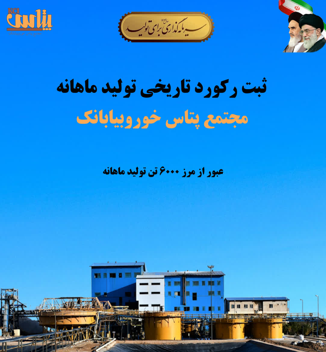 مجتمع پتاس خوروبیابانک در آذرماه امسال برگ زرین تازه‌ای در کارنامه عملیاتی خود ثبت کرد و برای نخستین‌بار موفق به عبور از مرز روانی تولید 6000 تن شد. تولید ماهانه این مجتمع به رقم بی‌سابقه 6059 تن کلرید پتاسیم رسید که رکوردی تاریخی محسوب می‌شود. مدیر مجتمع، این جهش تولید را نتیجه مستقیم مدیریت فرآیندمحور و بهینه‌سازی خطوط تولید دانست. تداوم این روند صعودی و اجرای برنامه‌های توسعه‌ای، جایگاه این مجتمع را به عنوان قطب صنعت پتاس کشور تثبیت خواهد کرد.