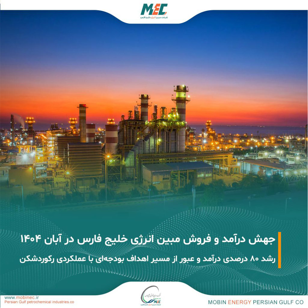 شرکت مبین انرژی خلیج فارس در آبان‌ماه ۱۴۰۴ عملکردی درخشان ثبت کرده و توانسته است با رشد قابل توجه در شاخص‌های تولید، فروش و درآمد، جایگاه خود را در صنعت انرژی کشور بیش از پیش تقویت کند.