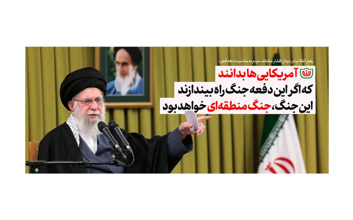 رهبر انقلاب اسلامی تاکید کردند: البته این را هم آمریکاییها بدانند که اگر این دفعه جنگی راه بیندازند، این جنگ، جنگ منطقهای خواهد بود.