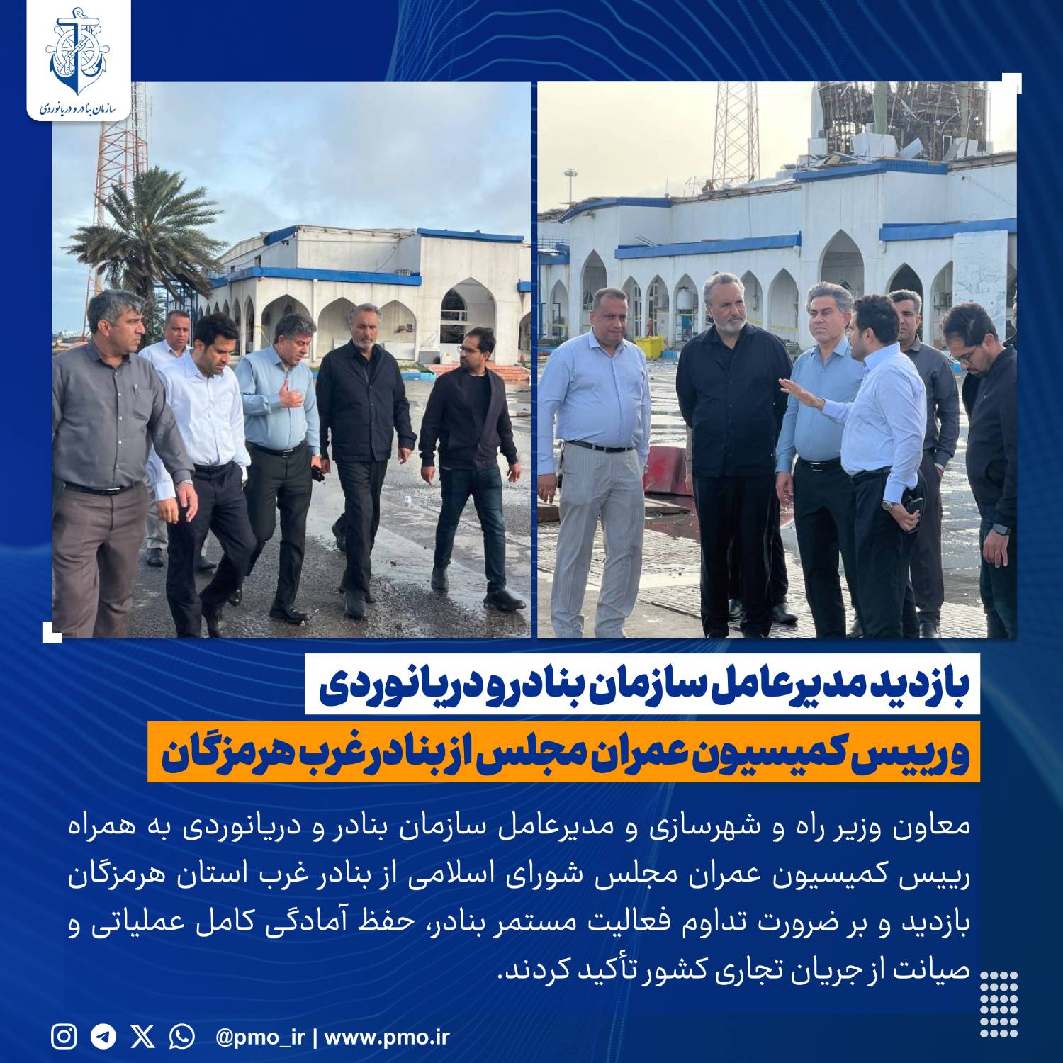 محمد شکیبینسب، معاون وزیر راه و شهرسازی و مدیرعامل سازمان بنادر و دریانوردی، به همراه محمدرضا رضاییکوچی، رئیس کمیسیون عمران مجلس شورای اسلامی، بازدیدی راهبردی از بنادر واقع در غرب استان هرمزگان به عمل آوردند. این بازدید با هدف نظارت مستقیم بر فعالیتهای جاری و بررسی وضعیت عملیاتی این مراکز مهم تجاری کشور انجام پذیرفت. مقامات ارشد در جریان این حضور میدانی، بر لزوم تداوم فعالیتهای مستمر و بیوقفه در این بنادر تاکید کردند.