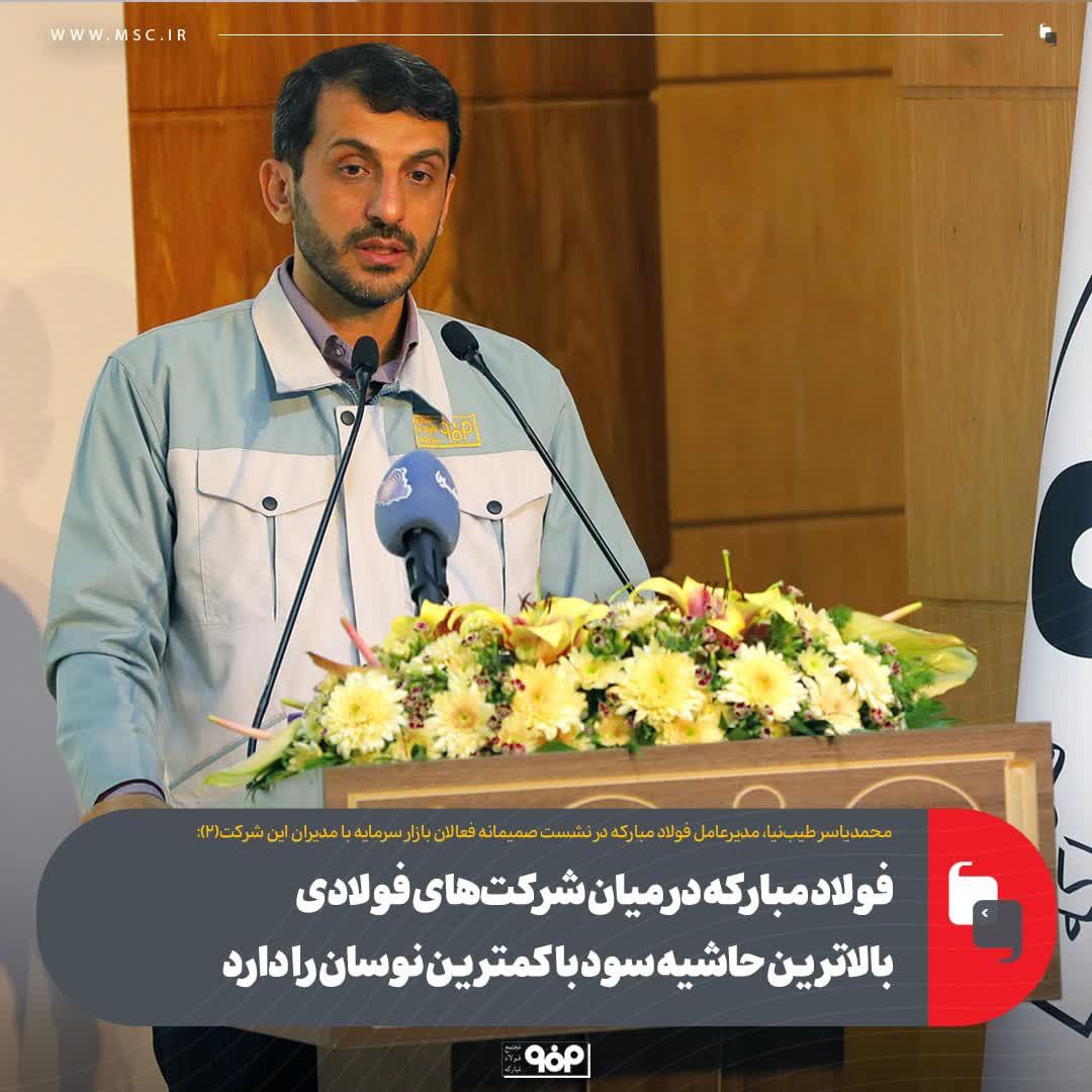 بخش اصلی سود فولاد مبارکه به دلیل سرمایه‌گذاری هدف‌مندی است که بخشی از آن به دلیل سرمایه‌گذاری‌هایی است که در کل زنجیره، در حوزه معدنی و در بالادست و پایین دست انجام داده‌ایم. فولاد مبارکه در میان شرکت‌های فولادی بالاترین حاشیه سود با کمترین نوسان را دارد. نوسان حاشیه سود ما بین ۳۵ تا ۵۵ درصد است و ما از سنگ تا رنگ و از حوزه معدنی و سرمایه‌گذاری در بالادست و پایین دست انجام داده‌ایم.