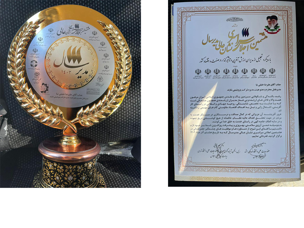 هشتمین اجلاس نشان عالی مدیر سال که در مرکز همایش های بین المللی صدا و سیما برگزار شد، دکتر علیرضا خلیلینیا، مدیرعامل پتروشیمی شازند، نشان عالی مدیریت را کسب کرد.