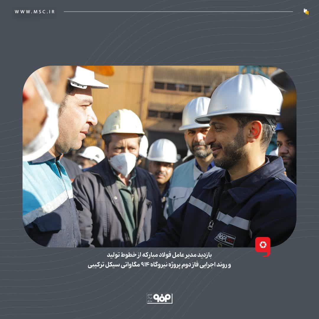 در پایان این برنامه بازدید، مدیرعامل فولاد مبارکه با حضور در نیروگاه ۹۱۴ مگاواتی سیکل ترکیبی این شرکت، از فاز دوم این پروژه و عملیات راه‌اندازی توربین‌ژنراتور شماره ۱ نیروگاه گازی سیکل ترکیبی با حداکثر مگاوات تولیدی بازدید به عمل آورد و گفت: خوشبختانه فاز دوم پروژه نیروگاه ۹۱۴ مگاواتی سیکل ترکیبی فولاد مبارکه روند رو به رشدی داشته و می‌توان گفت که رمز پیشرفت طرح‌های توسعه ما، همدلی و همراهی بین تمامی واحدهای تولیدی، پشتیبانی و ستادی است‌.