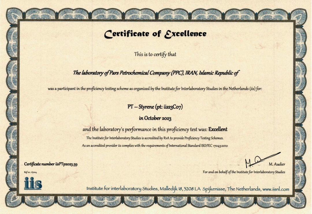 آزمایشگاه این شرکت در راستای اجرای برنامههای سالیانه کنترل کیفیت خارجی جهت حصول اطمینان از صحت و دقت اجرای آزمونهای آزمایشگاه، در آزمون مهارت بینالمللی نمونه استایرن ۲۰۲۳ از مؤسسه iis هلند شرکت کرد.