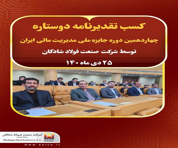 گفتنی است؛ این جایزۀ از سال ۱۳۸۹ آغاز شد و در سال جاری چهاردهمین دورۀ خود را برگزار کرد. در این رویداد پس از ارزیابی شرکتکنندگان بر اساس شاخصهای تخصصی مالی، حسابداری و عملکردی توسط نخبگان و اساتید خبره، در سه بخش تندیس، تقدیرنامه و گواهینامه از سازمانهای حائز رتبه تقدیر به عمل آمد که شرکت صنعت فولاد شادگان در ادامۀ افتخارآفرینیهای خود موفق به دریافت تقدیرنامه دوستاره گردید.