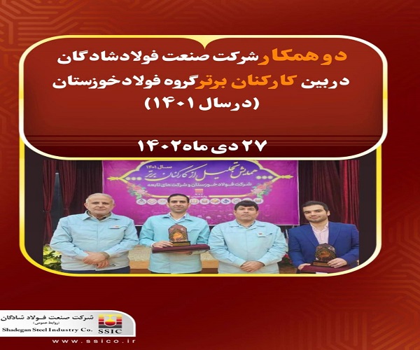 دو همكار شركت صنعت فولاد شادگان در بين کارکنان برتر گروه فولاد خوزستان در سال ۱۴۰۱