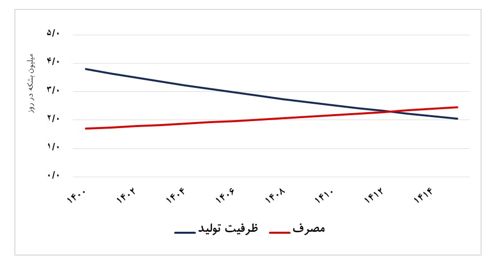 صندوق توسعه ملی در گزارشی اعلام کرد که با ادامه روند فعلی افت تولید و افزایش مصرف، «ایران تنها حدود یک دهه با تبدیل‌شدن از صادرکننده به واردکننده نفت فاصله دارد» و در سال 1412 تراز نفت ایران نیز صفر می‌شود.