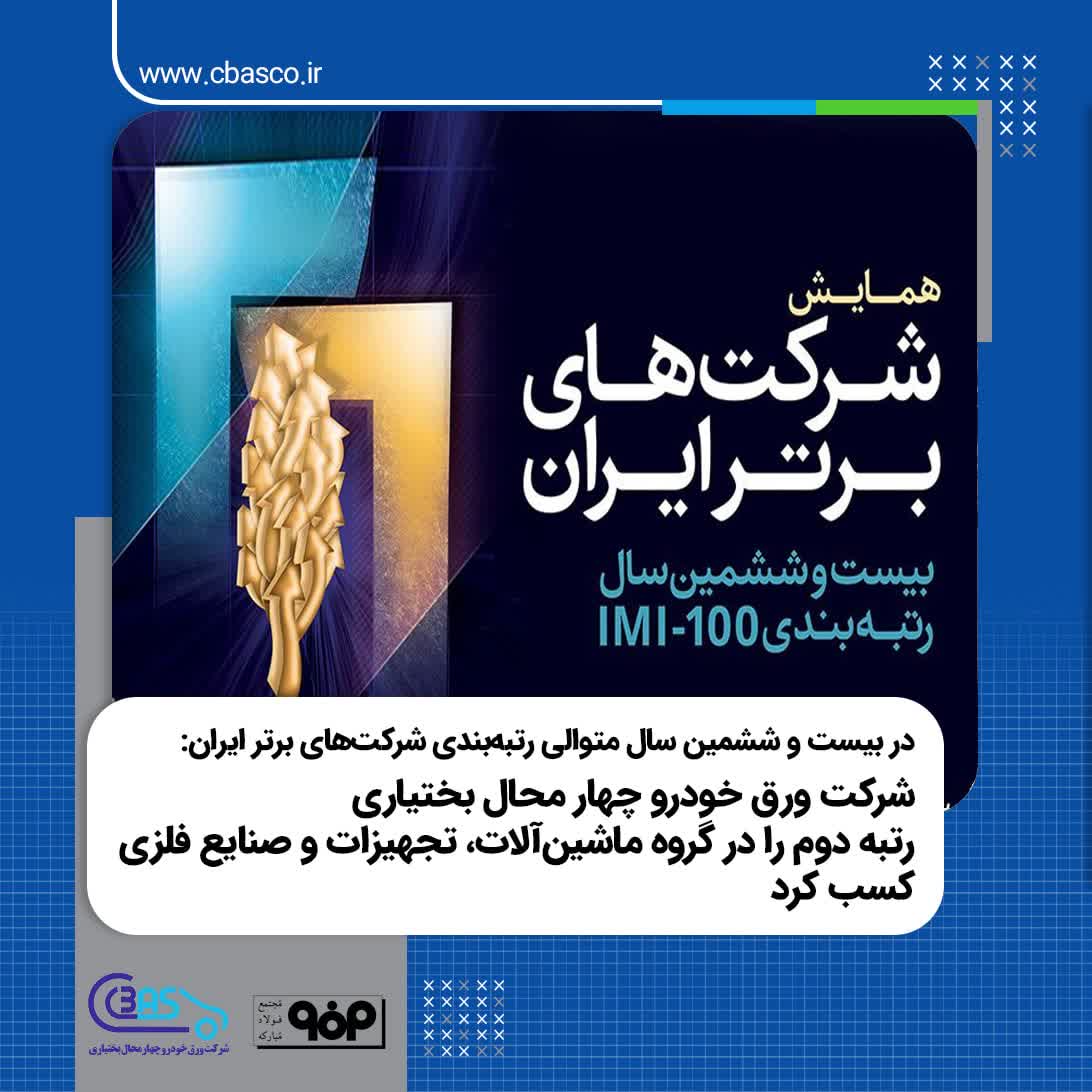 در این رویداد ملی و ارزیابی سازمان مدیریت صنعتی ایران، 500 شرکت موثر برگزیده شدند که شرکت ورق خودرو چهار محال بختیاری رتبه دوم را در گروه ماشین آلات، تجهیزات و صنایع فلزی بدست آورد.