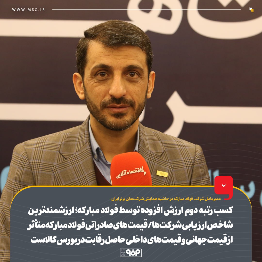 شرکت فولاد مبارکه طی این سال‌ها همواره به لحاظ شاخص‌های فروش، صادرات، نیروی انسانی و… جز رتبه‌های نخست شرکت‌های برتر ایران قرار داشته است؛ اما باید درنظر داشت شاخص بهره وری و ارزش افزوده اهمیت بالایی در این ارزیابی دارد و در شرایط کنونی باید در کشور مورد توجه قرار گیرد.