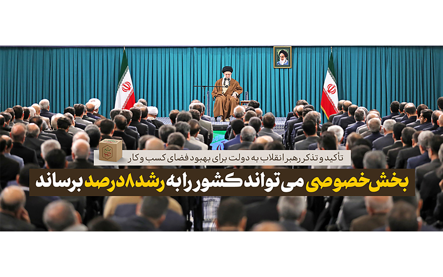 رهبر انقلاب نمایشگاه دیروز و جلسه امروز را نشان‌دهنده این حقیقت پرمعنا و روشن دانستند که بنگاه‌های بزرگ تولیدیِ بخش خصوصی، در سال‌های متوالی رشد چشمگیری یافته‌اند که این واقعیت نشان‌دهنده وجود یک بخش خصوصی توانا و قدرتمند است.حضرت آیت‌الله خامنه‌ای با اشاره به مسائل محدودکننده‌ای مانند تحریم‌ها و کم‌کاری برخی دولت‌های گذشته، گفتند: تلاش و پیشرفت بخش خصوصی با وجود چنین موانعی، انسان را امیدوار می‌کند که این بخش قادر است ایران را به رشد مطلوب برنامه پنج‌ساله هفتم یعنی رشد ۸ درصد برساند.