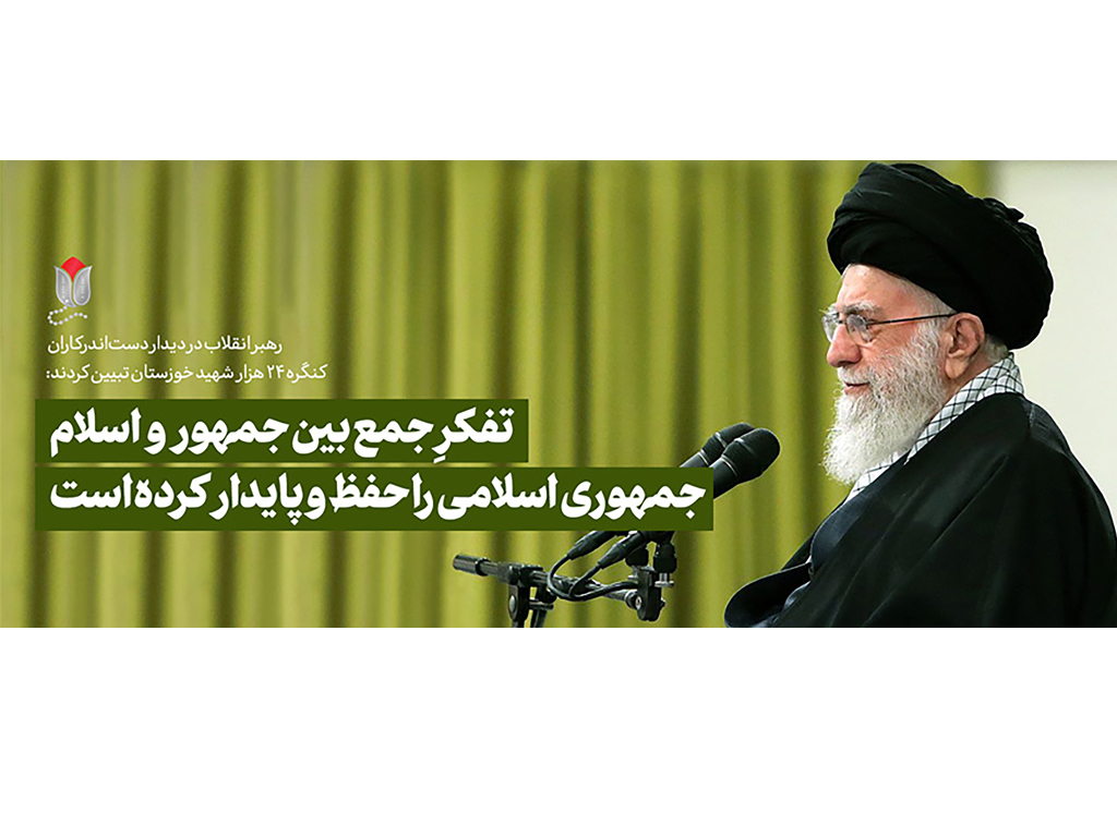 حضرت آیت‌الله خامنه‌ای رهبر معظم انقلاب اسلامی در دیدار دست‌اندرکاران کنگره ۲۴ هزار شهید استان خوزستان، حماسه و معجزه مردم خوزستان در دوران دفاع مقدس را نتیجه ترکیب همت مردمی و ایمان اسلامی دانستند و با اشاره به دقت نظر امام بزرگوار در انتخاب تعبیر «جمهوری اسلامی» گفتند: آنچه که باعث پایداری و پیشرفت نظام اسلامی و غلبه آن بر بسیاری از موانع و توطئه‌ها شد، جمع بین «اعتماد به جمهور مردم و اسلام» بود و در آینده نیز راه غلبه برمشکلات استمرار همین تفکر است.