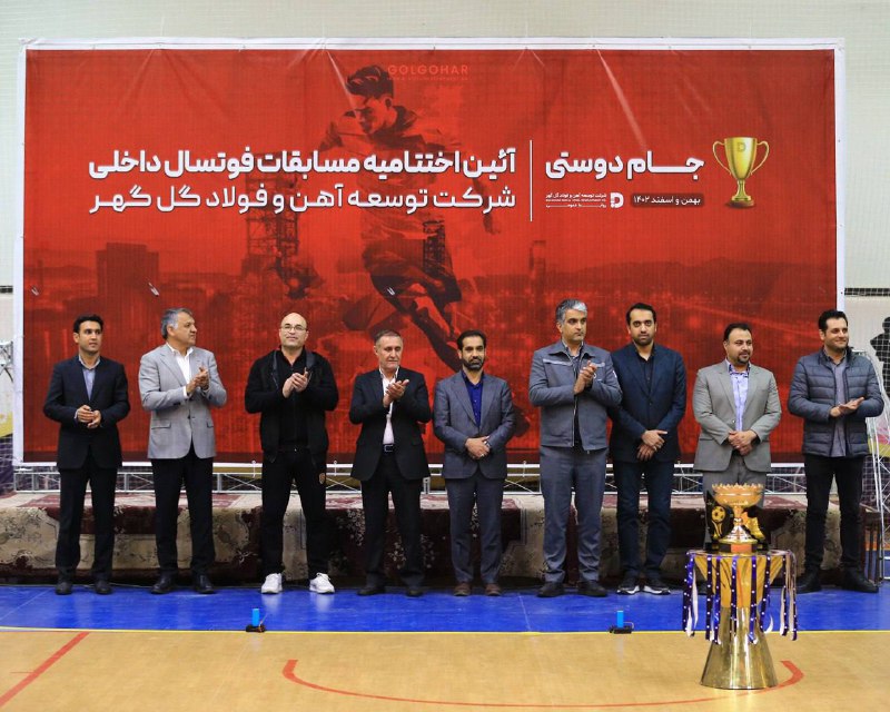 مسابقات فوتسال کارکنان مجموعه شرکت توسعه آهن و فولاد گلگهر با عنوان جام دوستی به کار خود پایان داد. مسابقات فوتسال کارگری شرکت توسعه آهن و فولاد گل گهر با هدف سلامت کارکنان مجموعه و ایجاد فضایی صمیمانه و بانشاط در بین همکاران برگزار شد و پس از یک دوره رقابت های گروهی و مرحله ای، سر انجام تیم گهرترابر به مقام قهرمانی، تیم حراست نائب قهرمانی و تیم تولیدنظمآوران به مقام سوم این مسابقات دست پیدا کردند. مراسم اختتامیه و تقدیر از مقام آوران و برگزارکنندگان این دوره از مسابقات که برای اولین بار در شرکت توسعه آهن وفولاد گل گهر و توسط امور رفاه و پشتیبانی این شرکت برگزار شد، با حضور برخی مسئولین شرکت هایی از منطقه گل گهر که در این جام تیم داشتند و مسئولان ورزشی شهرستان سیرجان همراه بود. همچنین تیم اورژانس به عنوان تیم اخلاق، فرشاد شهسواری از تیم گهر ترابر به عنوان آقای گل، مصطفی محمودآبادی و محمد خضری از تیم حراست به ترتیب به عنوان بهترین بازیکن و بهترین دروازبان این دوره از مسابقات انتخاب شدند.