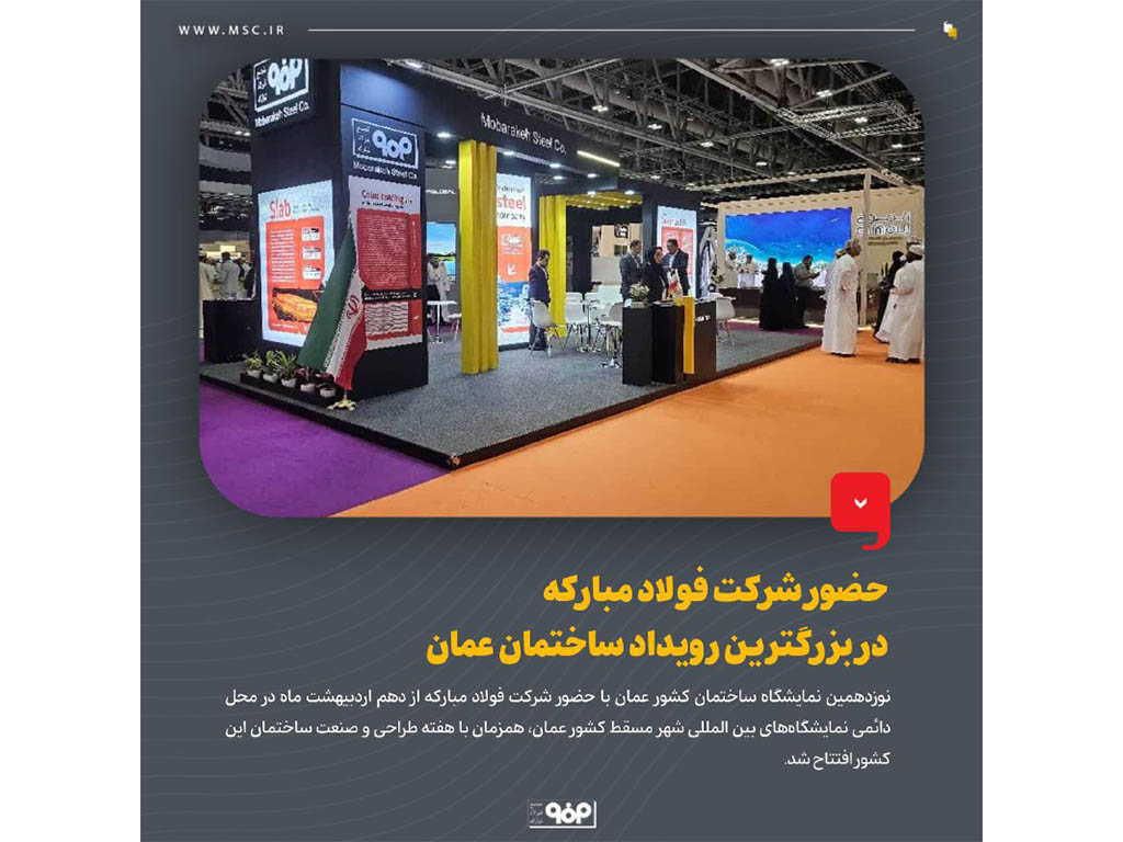 شرکت فولادمبارکه بهعنوان بزرگترین فولادساز خاورمیانه و شمال آفریقا باهدف توسعه صادرات و ارزآوری کشور در این نمایشگاه حضور یافت و به معرفی محصولات خود نیز پرداخت.