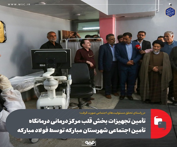 حجتالاسلام سید مهدی موسوی، امامجمعه شهرستان مبارکه: از فولاد مبارکه و سازمان تأمین اجتماعی برای تأمین تجهیزات درمانی و رفع نیاز مردم شهرستان مبارکه قدردانیم، ارائه خدمات درمانی به بیماران قلبی و عروقی از اهمیت زیادی برخوردار است؛ بخش قلب بیمارستانها بسیار مهم است و حرف اول را در مجموعه نظام پزشکی میزند.