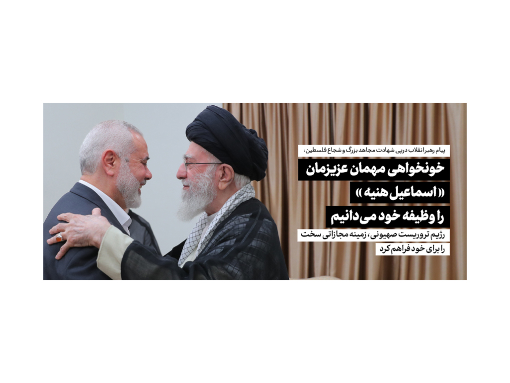 رهبر شجاع و مجاهد برجسته‌ی فلسطینی جناب آقای اسماعیل هنیه در سحرگاه دیشب به لقاء‌الله پیوست و جبهه‌ی عظیم مقاومت عزادار شد. رژیم صهیونی جنایتکار و تروریست، می‌همان عزیز ما را در خانه‌ی ما به شهادت رسانید و ما را داغدار کرد، ولی زمینه‌ی مجازاتی سخت برای خود را نیز فراهم ساخت.