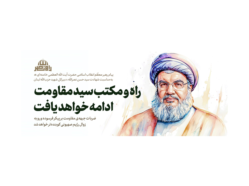 حضرت آیتالله خامنهای رهبر معظم انقلاب اسلامی در پیامی به مناسبت شهادت مجاهد کبیر و پرچمدار مقاومت، حجتالاسلام سیدحسن نصرالله ضمن تبریک و تسلیت شهادت رهبر کم نظیر حزبالله به سراسر جبهه مقاومت و امت اسلامی و اعلام پنج روز عزای عمومی در کشور، تأکید کردند: اساسی که او در لبنان پایهگذاری کرد و به دیگر مراکز مقاومت، جهت بخشید، با فقدان سید عزیز مقاومت نه تنها از میان نخواهد رفت، که به برکت خون او و دیگر شهیدان این حادثه، استحکام بیشتر خواهد یافت و ضربات جبهه مقاومت بر پیکر فرسوده و روبه زوال رژیم صهیونی کوبندهتر خواهد شد.