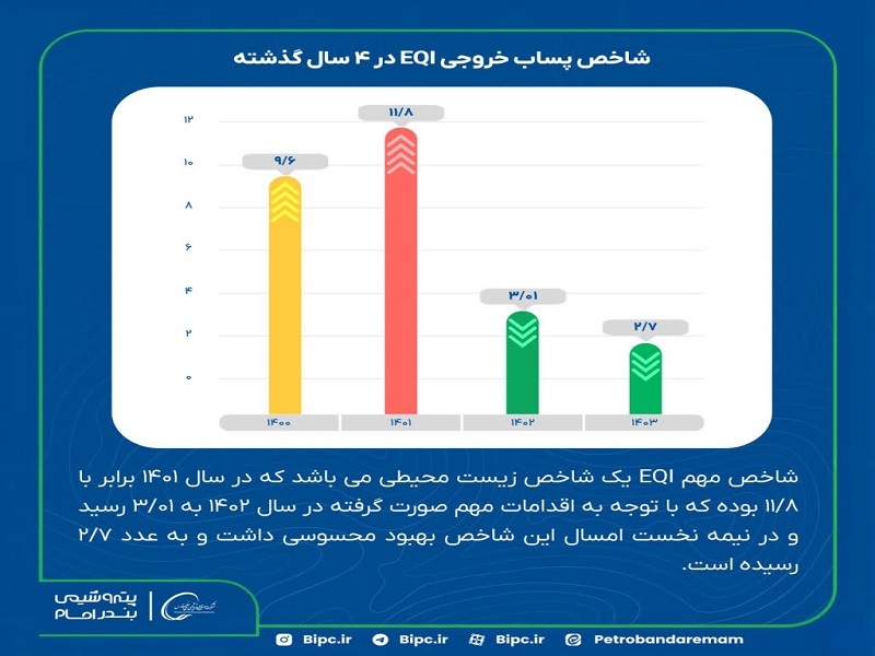 این بهبود چشمگیر با رویکرد تحقق بندرامام نوین و با توجه به اعتقاد و تعهد مجموعه مدیریت و کارکنان و با اجرای پروژههای بهبود و طرحهای کاهش از مبدأ آلایندهها و اصلاحات فرآیندی حاصل شده است.