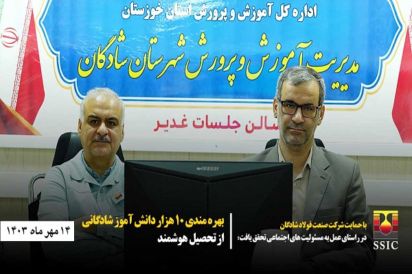 ناظم غبیشاوی، مدیر مدرسه سمپاد شادگان، حضور مستمر و حمایتهای شرکت صنعت فولاد شادگان در عرصههای مختلف به ویژه آموزش و پرروش را مقدمه نهادینه شدن عدالت اموزشی با اجرای طرح فیلم و مدرسه برشمرد و اظهار داشت که بهرهمندی یکایک دانش اموزان از اموزش یکسان و باکیفیت، ره آورد مهمی همچون تثبیت یادگیری و آموزش معکوس به همراه داشته است.