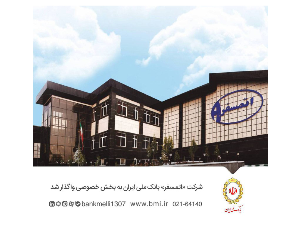 در راستای اجرای منویات مقام معظم رهبری و سیاستهای دولت چهاردهم مبنی بر خروج بانکها از بنگاهداری، بانک ملی ایران سهم خود از شرکت کارخانجات صنعتی و تولیدی «اتمسفر» را به مبلغ 20 هزار میلیارد ریال به بخش خصوصی واگذار کرد.