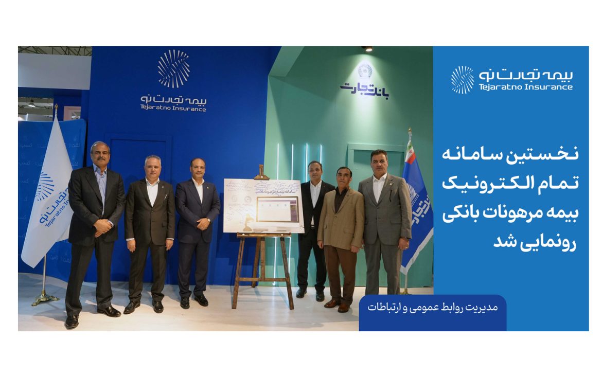 رونمایی از نخستین سامانه تمام الکترونیک بیمه مرهونات بانکی توسط بیمه تجارتنو و بانک تجارت، روز سهشنبه ۱۵ آبانماه، در دومین روز از نمایشگاه کیش اینوکس ۲۰۲۴ با حضور جناب آقای زمردیان رئیس محترم هیات مدیره، جناب آقای درگاهی نائب رئیس محترم هیات مدیره و جناب آقای رضوانی مدیرعامل محترم شرکت بیمه تجارتنو رونمایی شد.