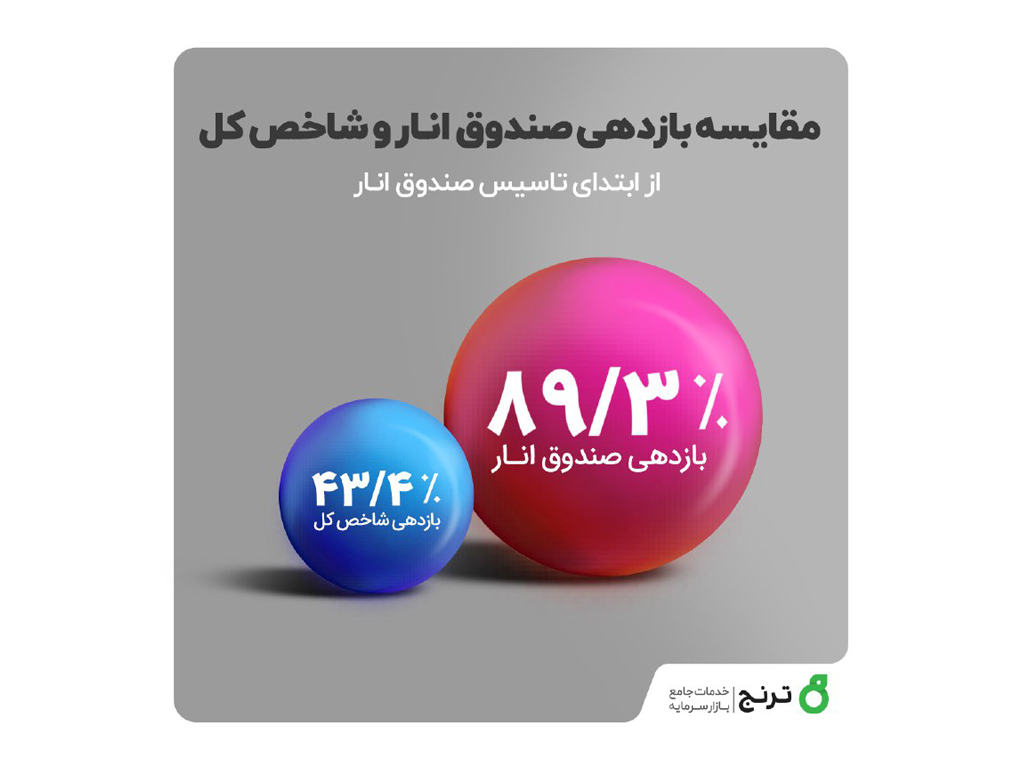 صندوق انار از ابتدای تاسیس خود تا تاریخ ۲۰ آبان ۱۴۰۳ بازدهی ۸۹/۳ درصد در مقایسه با بازدهی ۴۳/۴ درصد شاخص کل کسب کرده است که بیانگر عملکرد خوب صندوق سهامی انار به عنوان یک گزینه جذاب سرمایهگذاری است.