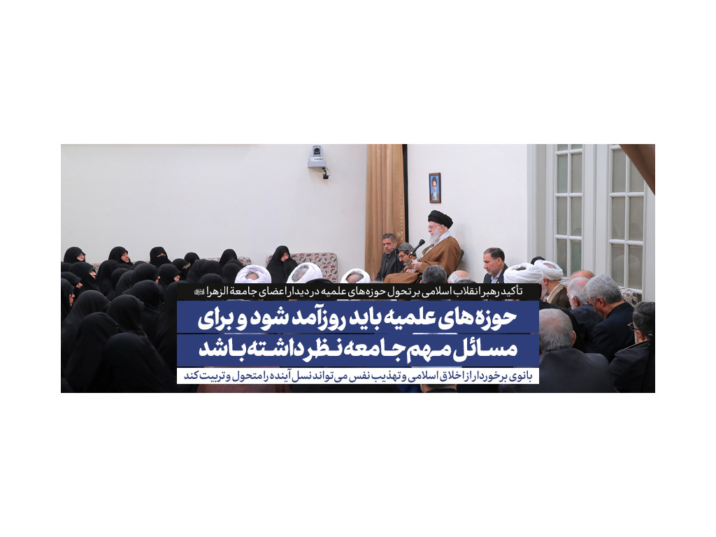 رهبر انقلاب، بهروزرسانی کتابها و شیوههای درسی در حوزههای علمیه و ورود به مسائل مورد نیاز جامعه از جمله مسائل پولی و مالی، حکمرانی، خانواده و مسائل جدید همچون رمز ارزها را از جمله الزامات تحول در حوزه علمیه خواندند و افزودند: مخالفت با تحول حوزه علمیه، مخالفت با پیشرفت دین در کشور است البته کسانی باید تحول را ایجاد کنند که صلاحیت آن را داشته باشند.