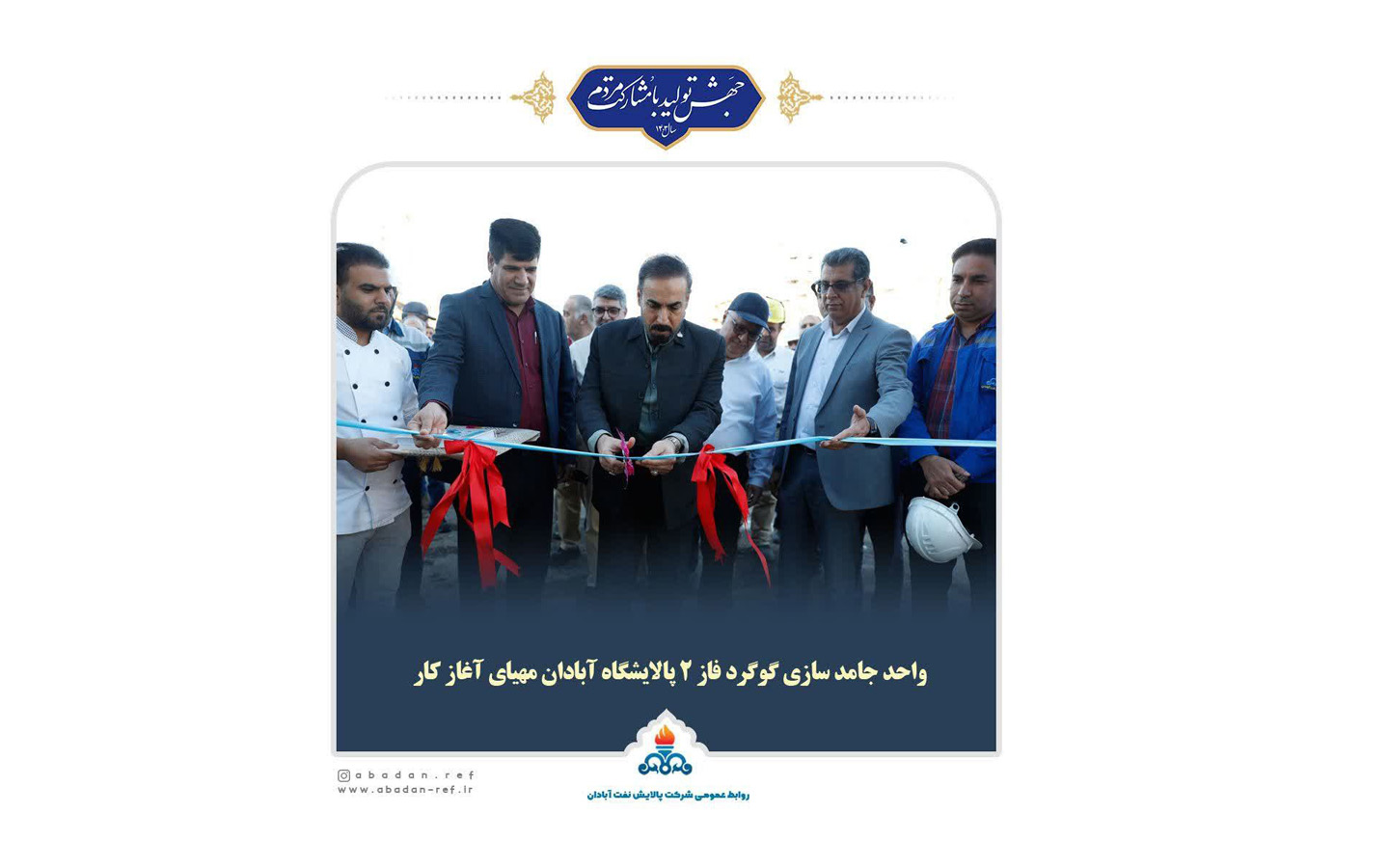 به گزارش روابط عمومی شرکت پالایش نفت آبادان، آیین افتتاح واحد جامد سازی و دانه بندی گوگرد فاز ۲ پالایشگاه آبادان با حضور مدیرعامل و جمعی از مدیران ارشد این پالایشگاه به عنوان کارفرما و نمایندگان شرکت ملی مهندسی و ساختمان نفت برگزار شد.