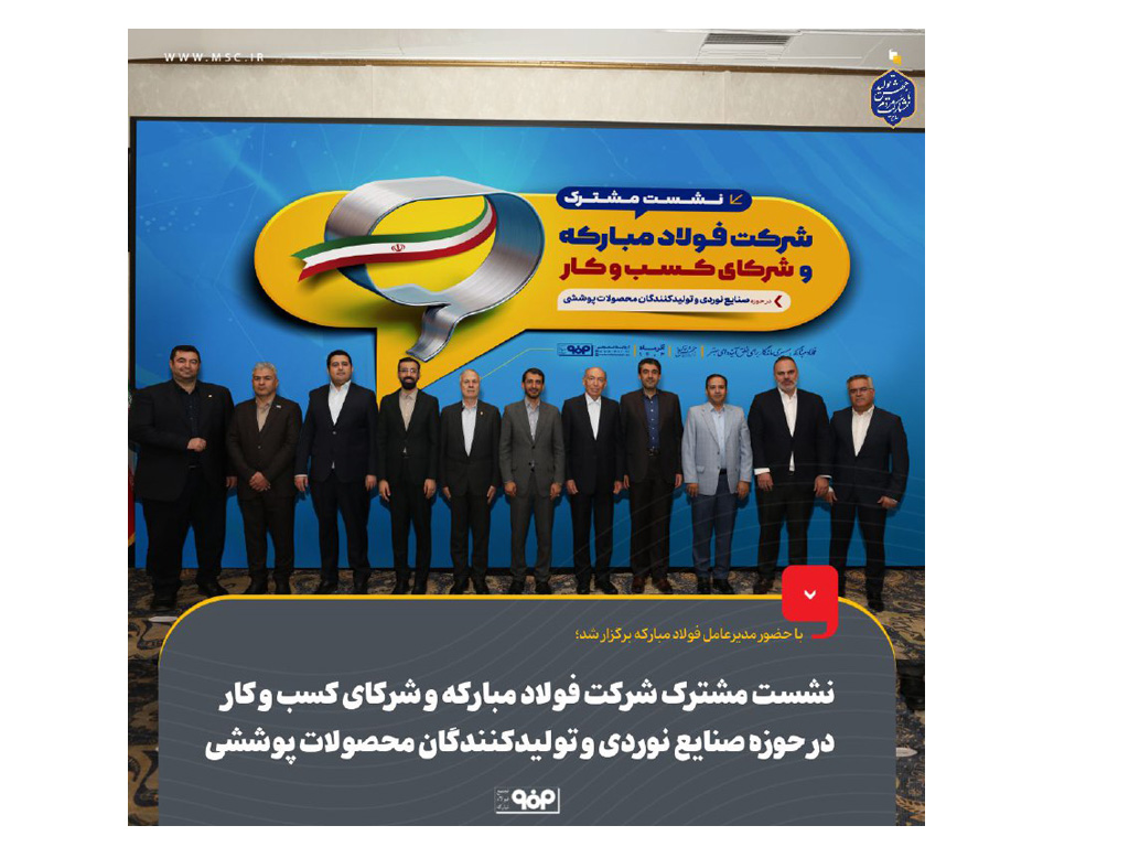 یکشنبه ۴ آذرماه نشست مشترک شرکت فولاد مبارکه و شرکای کسب و کار در حوزه صنایع نوردی و تولیدکنندگان محصولات پوششی با حضور محمدیاسر طیبنیا مدیرعامل فولاد مبارکه، رضا حیدری معاون فروش و بازاریابی این شرکت و مدیران عامل تمام شرکتهای نوردکار کشور در حاشیه بیست و یکمین نمایشگاه بینالمللی ایران متافو برگزار شد.