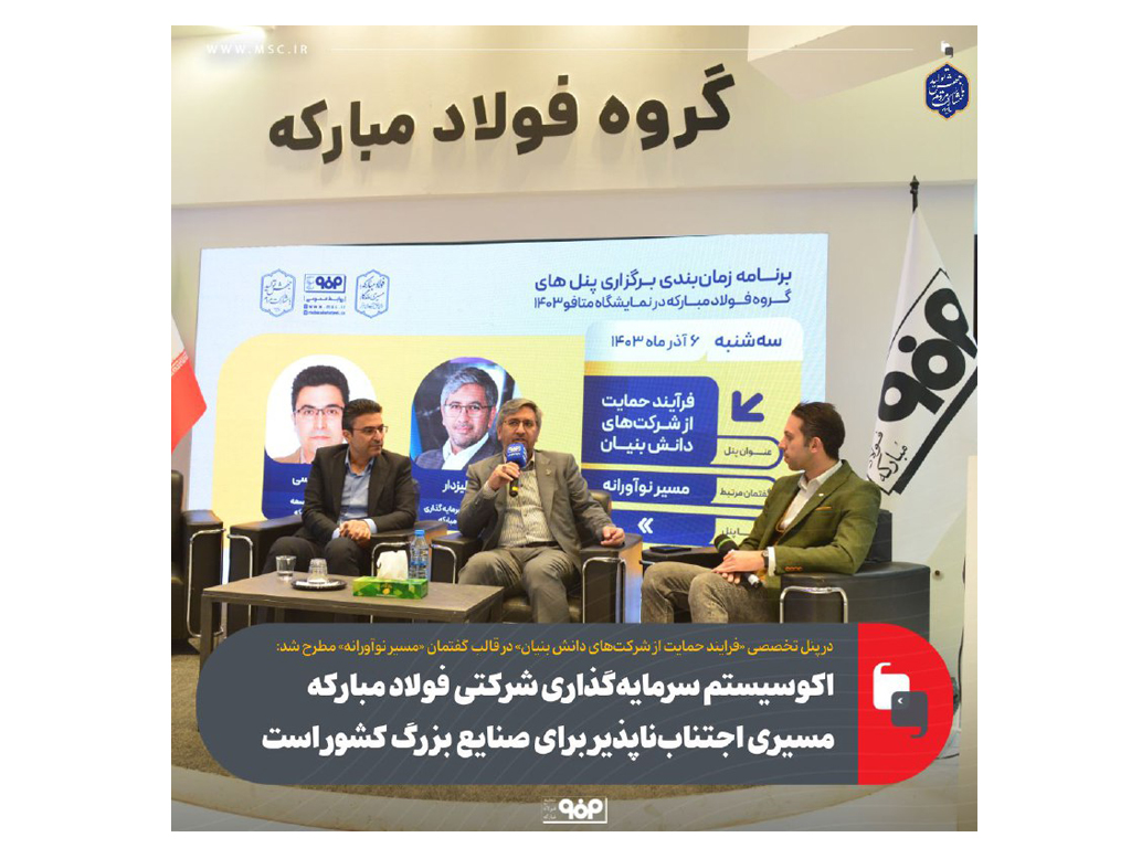 در پنل تخصصی «فرایند حمایت از شرکت‌های دانش بنیان» در قالب گفتمان «مسیر نوآورانه» مطرح شد: اکوسیستم سرمایه‌گذاری شرکتی فولاد مبارکه مسیری اجتناب‌ناپذیر برای صنایع بزرگ کشور است