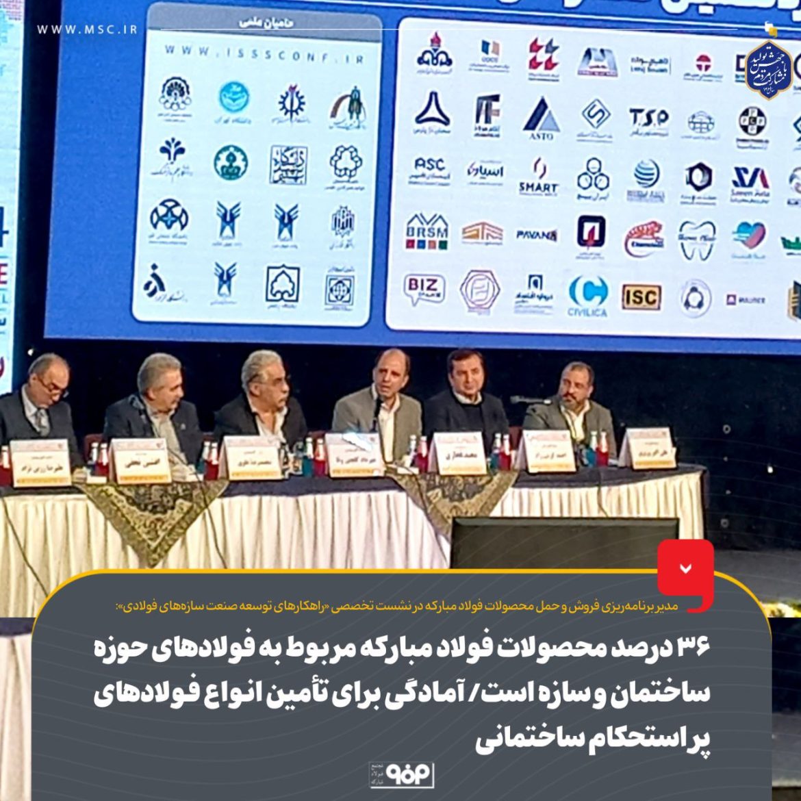 مدیر برنامهریزی فروش و حمل محصولات فولاد مبارکه تصریح کرد: فولاد مبارکه بر کاهش مصرف انرژی و افزایش بهرهوری تمرکز دارد و تولید محصولات فولادی با استحکام بالا را برای کاهش مصرف کربن و حرکت در مسیر توسعه پایدار به صنعت سازههای فولادی کشور پیشنهاد مینماید و آمادگی تأمین آن را هم در صورت وجود تقاضا، دارا است. به طور مشخص طبق بررسیهای کارشناسی صورتگرفته، استفاده st۵۲ به جای st۳۷ در انواع سازههای فولادی میتواند تا حدود ۲۰ درصد صرفه اقتصادی و کاهش وزن سازه را به همراه داشته باشد