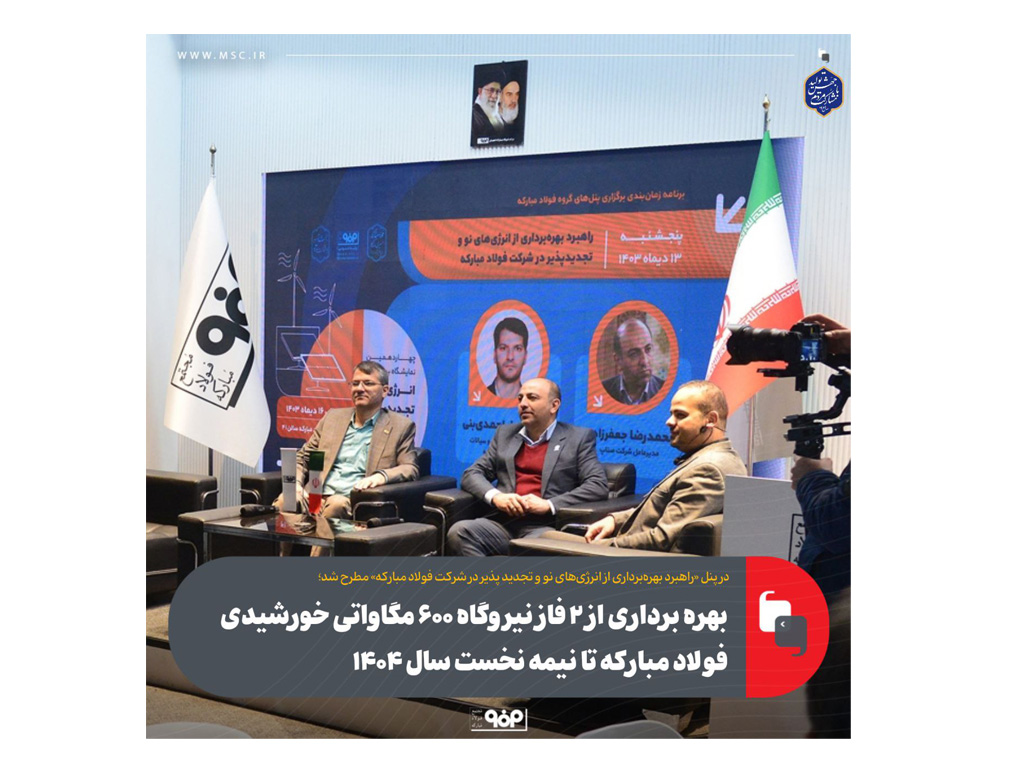 بهره برداری از ۲ فاز نیروگاه ۶۰۰ مگاواتی خورشیدی فولاد مبارکه تا نیمه نخست سال ۱۴۰۴